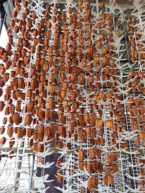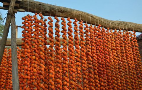 这种延续了千年的吊柿传统工艺一直流传到现在,我们才能吃到溏心柿饼。