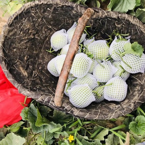 也有一藤留有三瓜,先后成熟。最早成熟的叫“头茬瓜“,依次是二茬,三茬。话说吃瓜要吃头茬瓜,就是因为头茬瓜通常都是长得最好,甜度最高,都是精品,越往后品质就越差了。市面上那么多甜瓜,大小,颜色,都相同,价格和口感却不同的原因就在这里。