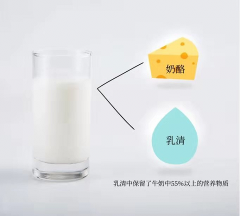 乳清就牛奶制作奶酪过程中产生,保留了牛奶中55%以上的营养物质,包括大量乳清蛋白、乳糖以及多种矿物质、维生素等营养成分。