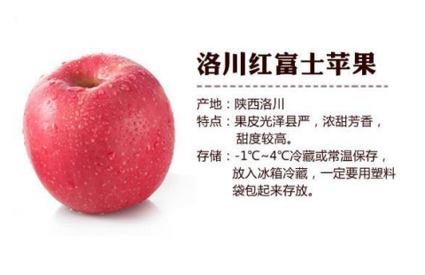 洛川富士以色、香、味俱佳而著称,它果形优美,果面洁净,色泽艳丽,肉质脆密,含糖量高(高于其他地区苹果2%~3%),香甜可口,硬度适中;