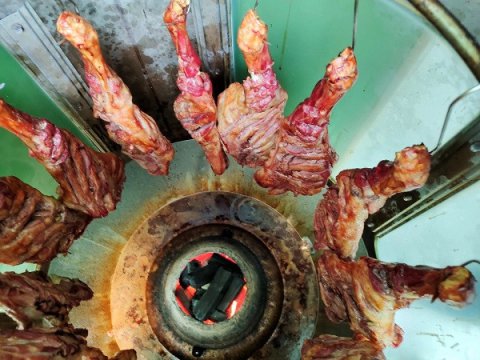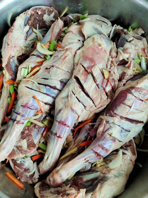 烤羊腿:烤前3斤以上,烤完2斤左右;