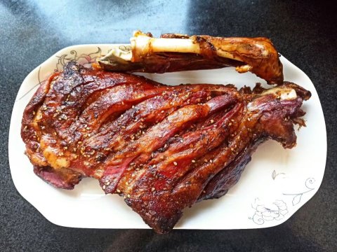 烤羊腿偏瘦,外焦里嫩,瘦而不柴