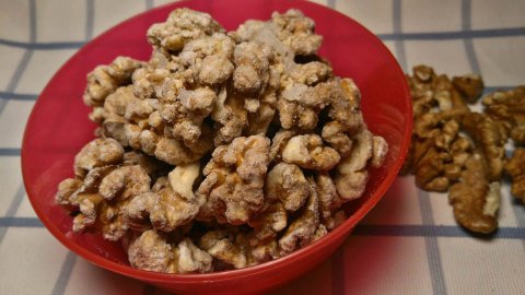 口感脆脆的,外面一层冰糖外衣,包裹香浓的核桃仁,一点也没有生吃时候的苦涩味,既营养健康。