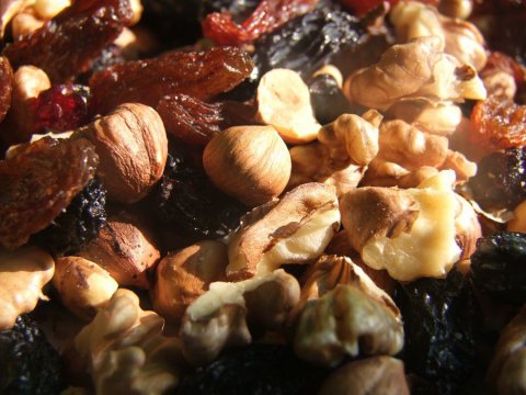 就说这坚果吧,秦岭山的老树核桃、大兴安岭的野生榛子、新疆的特级黑加仑与红香妃等,我放的料非常足了,就差把皮给撑爆了。