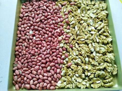 核桃采用秦岭山里的老树核桃,老会员都知道美食群在秦岭山上有一片自己的核桃树,每年秋天大伙吃到的鲜核桃就是这里的,到了核桃完全成熟后舅舅就会晒干,供群里会员冬天食用,果仁饱满,口感油香,营养价值很高