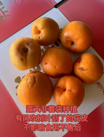 2、山顶大风,杏子有被树枝划到的情况,杏子属于后熟性水果,后熟后的印记颜色会变深,种情况不伤及果肉不影响食用,不在售后范围内