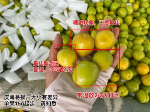 备注:杏子属后熟性水果,务必放软了食用,硬的吃偏酸(用手按压皮塌陷即可食用)