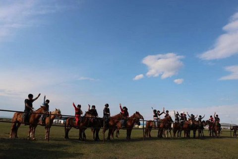 下午到黑山头马场,体验骑行蒙古马,挑选自己喜欢的马儿,穿好马靴,戴上帅气的马帽,各自跨上马背,在马倌跟领队的带领下在草原里自由练习骑马,此次骑马拉练要将骑马要领全部掌握,学的快的队员可以约几个人跟随马倌纵马驰聘在大草原上。呼吸草原上夹杂着草香的新鲜空气,像古老的蒙古民族一样,带着征服世界的渴望开始整个下午的浪漫旅程,骑着马在草原上驱赶牛羊,让我们在这里共同体验策马扬鞭,纵横驰骋在大草原的豪放心情!伴随着夕阳的霞光,共同陶醉在美丽的大自然中!