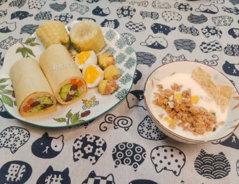 我喜欢把它作为早餐食材,抹上酸奶酪,加入喜欢的蔬菜,煎两片鸡蛋和牛肉,做成快手煎饼,配牛奶、酸奶,或是豆浆,就是一份营养丰富的快手早餐。