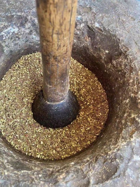 手工捣制而成的纯花椒,适合做饼、做馅等