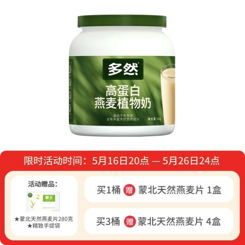 高蛋白燕麦植物奶1000g*3桶,送天然燕麦片4盒