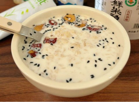 加入一袋30g或3勺燕麦植物奶,搅拌均匀即可饮用