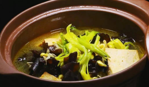 “四物汤“是指黄花菜、黑木耳、豆腐、豆芽做成的健身食疗汤