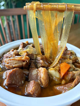 看似沙脆薄,但是很有韧性(绿豆淀粉的优点),顺滑!