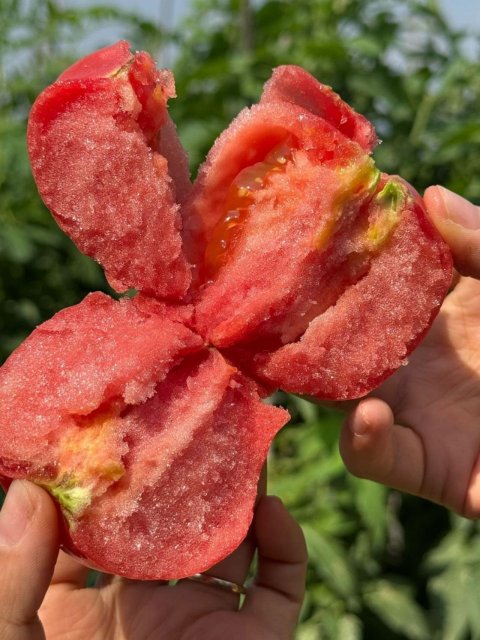 果肉软沙,汁水足,皮薄无空心,番茄浓郁,酸甜可口
