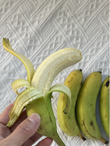 香蕉正常收到2天左右就开始成熟,青皮香蕉在天热的时候,及时熟了外皮也是偏绿的,但是在天冷的时候就会偏黄一些,这是它的特性