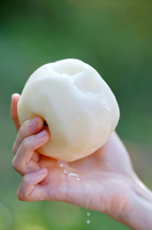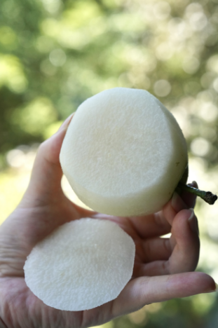 金灿灿的外皮下藏匿的是雪白的果肉,犹如秋月下的光芒洁白璀璨。
