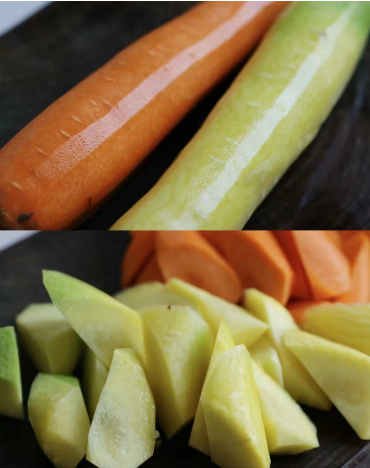 2、胡萝卜中的胡萝卜素通过切碎,煮熟等方式,使其细胞壁破碎,才能释放出来,会更容易被人体吸收利用;所罕有的维生素A、胡萝卜素等都属于脂溶性物质,适合与肉一起炖,或用足量的植物油炒熟食用,这样可以提高营养成分的吸收利用。