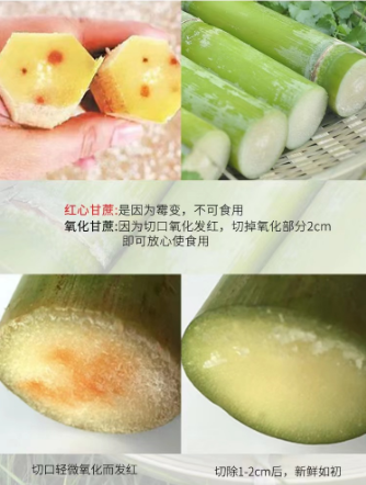 如果红心深入到蔗肉内部,则是发生霉变的,绝不可食用;