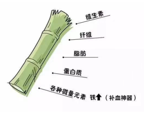 甘蔗不仅解渴补水也能补充能量,含大量铁钙锌等人体必需微量元素,尤其铁元素更突出,被誉为“补血果“之称。