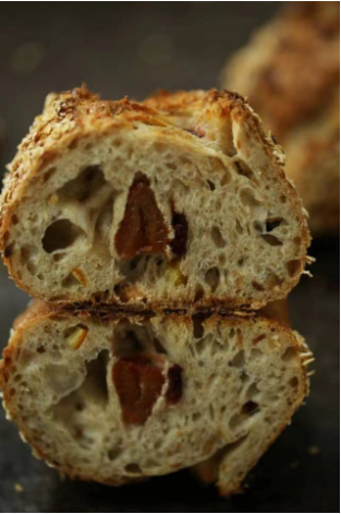采用T65传统面粉,搭配T80有机全麦面粉、T170黑麦面粉组合而成,同时融入果干,经过低温长时间发酵而来,外脆内软,特别滋养