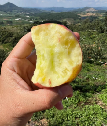 别看它个头小小,风味却一点也不少,17-20度的甜,纯甜无酸,是目前能吃到最好吃的苹果。咬一口咔嚓脆,汁水充足滋润却又不会粘腻,这样的感觉刚刚好