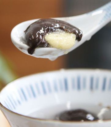 大黄米黑芝麻汤圆:糯米、饮用水、黑芝麻、白砂糖、猪油、大黄米、黑芝麻、花生