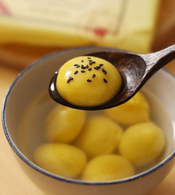 大黄米花生汤圆:糯米、饮用水、花生、白砂糖、猪油、大黄米、白芝麻