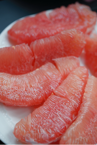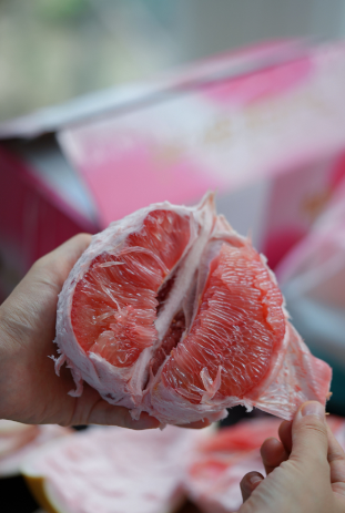 富含维生素A,B-胡萝卜素和番茄红素,营养价值及甜度均是普通柚子的1.51倍,果肉红色,十分诱人,柔软多汁,被称为“柚中之冠”
