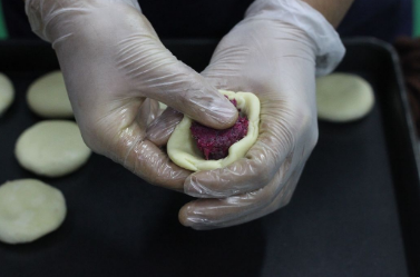 云南大理的重瓣玫瑰花制作鲜花饼根本无需色素和香精,遵循传统的制作工艺,坚持纯手工制作。