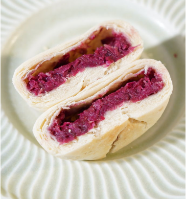 云南的鲜玫瑰花饼,整片整片鲜玫瑰花放进去,吃进嘴里尽是清甜。内馅的湿润度和饼皮融合的刚刚好,安佳黄油加小麦的香气,再混入玫瑰花的花香,酥皮在里油皮在外!