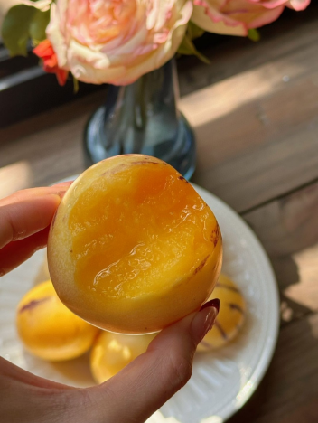 熟的人参果是黄色的,而且紫色条纹也很明显,口感清甜爆汁,这才是人参果该有的味道