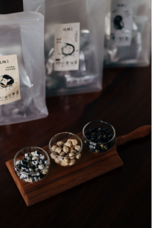 以黑豆为底,融怀山药粉健脾益气,加入少许木薯粉与麦芽糖,制成清脆小粒