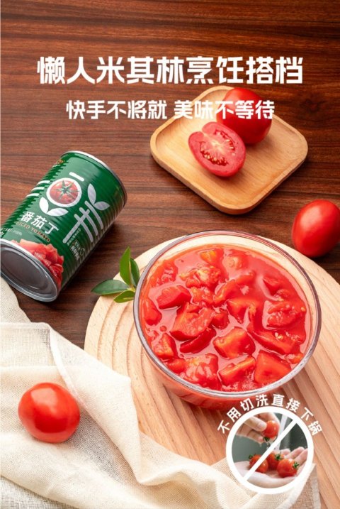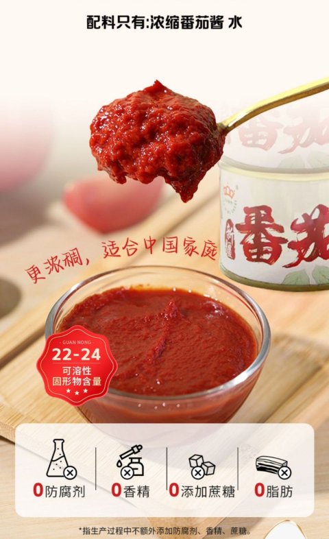 番茄酱:是以番茄为主,由自然熟的番茄经破碎、打浆,去除皮和籽后,浓缩罐装,杀菌而成,只有单一的番茄味,酸甜都是自然新鲜。常用做鱼、肉、蔬菜等烹饪佐料,起增色、添酸助鲜增香的作用