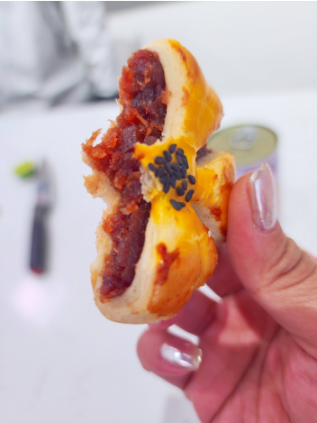 馅料直接就是山楂糕,不是外面那种工业流水线出来的馅儿,而是把整块山楂糕裹在了酥皮粒,不甜不腻!配茶配咖啡都OK!