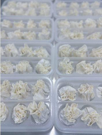 原料2——稍麦皮:稍麦皮像舞者的裙摆一样,用河套平原的精选小麦粉制作而成,不塌底,不露馅,不破皮,不仅筋道,而且口感极佳。