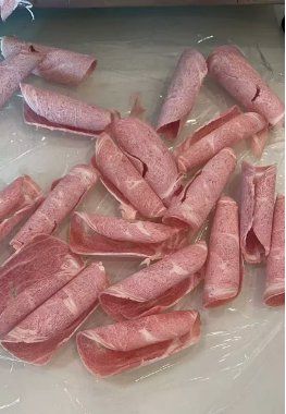 牛肉卷:取自散养草地牛肉,红白相间,高蛋白低脂肪,