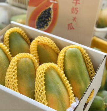 牛奶木瓜是台湾引进的老树果种,生长于海南,喜阳,一年四季都生长在温和的地方。全程采用有机肥和精细化管理,确保每一个果子都是树上自然熟到9成以上,这样的木瓜口感更加纯粹香甜
