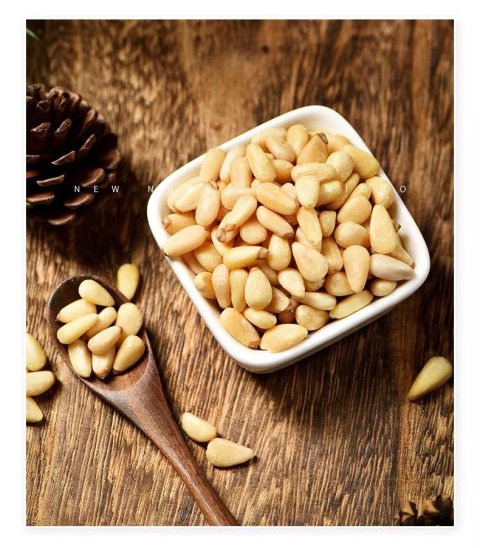 松子个大、均匀、颗粒饱满。松仁光亮新鲜,未经多余加工