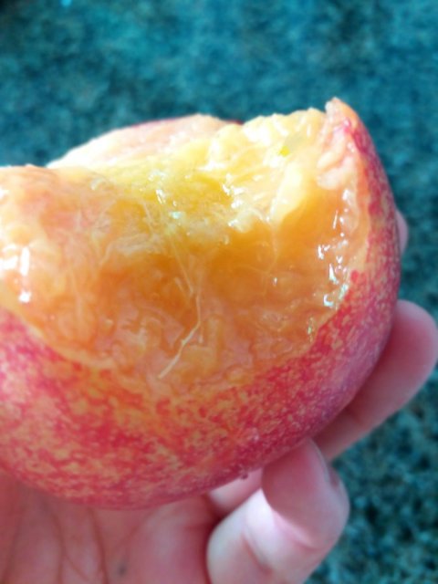 放软的黄金蜜桃,香气翻倍,这时候可以撕皮吃,果肉又香又软,汁水多的离谱。