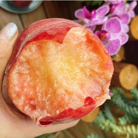这款蜜桃属于软硬两吃,刚拿到的时候果肉稍硬,是脆口党的最爱!果肉紧实却不咯牙,纯甜无酸,桃香浓郁。